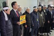 (누리일보) 9일부터 국회 천막농성을 이어가고 있는 김진태 강원특별자치도지사가 2월 10일 국회 행정안전위원회 제1법안심사소위원회 회의실 앞에서 ‘투쟁’이라고 적힌 머리띠를 두르고 강원특별자치도법 3차 개정안의 조속한 심사를 강력 촉구했다. - 이날 국회 행안위 법안심사소위에서는 행정통합특별법이 상정돼 심사가 진행 중이며, 해당 법안은 11일까지 논의가 이어질 예정이다. 이 자리에는 유상범 국회의원(홍천・횡성・영월・평창)도 ‘강원도민의 삶을 바꾸는 선택. 강특법 3차 개정 즉각 통과’라고 적힌 피켓을 들고 행정안전위원회 의원들에게 강원특별법 3차 개정안의 조속한 처리를 요청했다. 김 지사는 “행정통합 시도인 5극은 빠른 속도로 국회 심사대에 오른 반면, 정부 부처 협의까지 마친 강원특별법 3차 개정안은 17개월 째 단 한 차례도 법안심사 논의가 이뤄지지 않았다”며 강한 유감을 표했다. 이어 “강원・전북・제주・세종, 이른바 3특과 행정수도 특별법안 역시 균형발전 차원에서 신속히 처리돼야 한다”고 강조했다.