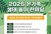 (누리일보) 대구유아교육진흥원은 오는 10월 18일 대구에 거주하는 유아와 동반가족 130가족을 대상으로 생태 체험 프로그램‘2025 온가족 생태놀이 한마당’을 운영한다. 이 프로그램은 가족이 함께 다양한 생태 체험 활동을 하며 유아와 가족 간의 정서적 유대감 및 생태적 감수성을 높이기 위해 마련됐다. 주요 체험 활동으로는 ▲밧줄 모험놀이(스윙 그네·짚라인 등 5종), ▲숲 선생님과 자연 놀이(낙엽 폭죽놀이 외 2종), ▲생태 탐험놀이(나무야 퀴즈 한마당 외 1종), ▲내 손안의 숲, 열매 팔찌 만들기, ▲내 얼굴에 쏙! 생태 페이스 페인팅, ▲생태 맘껏놀이, ▲사랑 나눔 먹거리 체험 등이 있다. 프로그램 참여를 원하는 가족은 대구유아교육진흥원 누리집과 카카오톡 채널(대구유아교육진흥원)을 통해 신청할 수 있다. 사회적 배려대상 가정은 9월 24일부터, 그 외 가정은 9월 29일부터 선착순으로 참여 가족을 모집한다. 보다 자세한 사항은 대구유아교육진흥원 누리집의 ‘알림마당-공지사항’에서 확인 할 수 있다. 장윤정 원장은 “유아와 가족이 자연 속에서 마음껏 뛰어놀며 자연의 소중함을 느끼