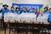 (누리일보) 수원시 여성단체협의회는 14일 수원시자원봉사센터에서 ‘사랑의 김장 담그기’ 행사를 열었다. 행사에는 소진순 경기도여성단체협의회 수원시지회 회장과 회원, 수원특례시청 씨름단 감독 선수 10명 등이 참여해 정성껏 손질한 재료로 김장을 해 배추김치와 동치미 300상자를 마련했다. 이날 담근 김치는 동 행정복지센터에 배분해 관내 취약계층 가구에 지원할 예정이다. 한편 수원특례시청 씨름단은 “취약계층 가구에 전달해 달라”며 쌀, 휴지, 라면 등 생필품을 수원시 여성단체협의회에 전달했다. 소진순 경기도여성단체협의회 수원시지회 회장은 “추운 날씨에 어려움을 겪는 이웃을 위해 김장과 동치미를 정성껏 준비했다”며 “취약계층 이웃들이 따뜻한 겨울을 보내는 데 도움이 되길 바란다”고 말했다.