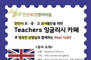 (누리일보) 안산시 안산화정영어마을은 오는 15일부터 12월 17일까지 관내 소속 교사를 대상으로 ‘티처스(Teachers) 잉글리시 카페’를 운영한다고 10일 밝혔다. 티처스(Teachers) 잉글리시 카페는 영어 회화에 관심이 있는 관내 초·중·고 교사를 대상으로 영어 말하기, 수업 영어, 영어 학습 네트워크 형성 등을 제공하는 프로그램이다. 안산화정영어마을의 원어민 교사가 직접 진행한다. 이번 프로그램은 교사들의 원활한 참여를 위해 퇴근 후 저녁 시간에 운영된다. 참가 비용은 무료이며, 관내 교사라면 누구나 안산시 통합예약시스템에서 예약한 뒤 참가할 수 있다. 오는 17일부터 온라인 접수가 진행된다. 대기 인원의 경우 참가 취소자가 발생하면 신청 순번에 따라 충원한다. 이민근 안산시장은 “선생님들의 영어 실력 향상과 효과적인 학습 진행을 위한 우수한 프로그램”이라며 “앞으로도 영어 공교육 현장을 적극 지원하고 안산시의 영어 학습 환경을 지속적으로 확장해 나가겠다”고 말했다. 한편, 안산화정영어마을은 명품 교육도시 안산시의 슬로건에 발맞춰 ▲유치원생 입소교육 ▲초등학생 방과후 프로그램 ▲중·고등