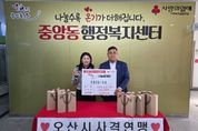 (누리일보) 오산시 중앙동은 오산시 사격연맹이 중앙동 행정복지센터를 방문해 관내 취약계층을 위한 들기름·참기름 세트와 현금 등 총 60만원 상당의 후원금을 기탁했다고 밝혔다. 이번 기탁은 경기 불황으로 어려움을 겪고 있는 소외된 이웃들에게 실질적인 도움을 주고 지역사회 나눔 문화를 확산하기 위해 마련됐다. 전달된 현금과 물품은 중앙동 내 저소득층 및 복지 사각지대 가구에 소중히 전달될 예정이다. 김동규 오산시 사격연맹 회장은 “작은 정성이지만 어려운 이웃들이 건강하고 따뜻한 일상을 보내는 데 도움이 되길 바라는 마음으로 회원들과 뜻을 모았다”며 “앞으로도 도움이 필요한 곳을 세심히 살피며 지속적인 봉사와 나눔을 이어가겠다”고 전했다. 백경희 중앙동장은 “지역사회를 위해 따뜻한 나눔을 실천해주신 오산시 사격연맹에 깊이 감사드린다”며 “기탁해주신 성금과 물품은 도움이 꼭 필요한 이웃들에게 정성을 담아 전달하겠다”고 밝혔다.