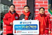 (누리일보) 광주은행은 1일 아시아문화전당 광장에서 열린 ‘희망 2026 나눔캠페인’ 성금 전달식 및 사랑의 온도탑 제막식에 참석해 총 1억4천7백만 원의 성금을 기탁했다고 밝혔다. 광주은행은 지역 대표 금융기관으로서 복지 사각지대 해소와 나눔 문화 확산에 앞장서기 위해 ▲모금 참여 기부금 1천만 원 ▲‘광주·전남愛사랑카드’ 광주 고향사랑기부금 9천1백만 원 ▲범죄피해자 지원금 2천만 원 ▲쌀 기부금 2천6백만 원 등 총 1억4천7백만 원의 성금을 전달했다. 전달된 성금은 광주사회복지공동모금회를 통해 지역의 어려운 이웃들이 보다 따뜻한 겨울을 보낼 수 있도록 다양한 지원 사업에 활용될 예정이다. 광주은행은 이와 별도로 전남 지역에도 ▲모금 참여 기부금 1천만 원 ▲‘광주·전남愛사랑카드’ 전남 고향사랑기부금 6천1백만 원 등 총 7천1백만 원을 기탁할 계획이다. 2018년 창립 50주년을 기념해 출시된 ‘광주·전남愛사랑카드’는 이용액의 일부가 고객이 지정한 광주·전남 사회복지공동모금회에 자동 기부되는 사회공헌형 금융상품이다. 출시 이후 현재까지 약 19억9천만 원을 기부하며 지역사회 나눔 실천에 기여
