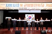 (누리일보) 구리시의회는 10월 29일 ‘지방자치 및 균형발전의 날’을 맞이하여 기념식을 비롯한 다양한 부대행사를 성황리에 마무리했다. ‘지방자치 및 균형발전의 날’은 1987년 6월 민주항쟁의 결과로 그해 10월 29일 대통령 직선제와 지방자치제의 부활을 담고 있는 9차 개헌이 이루어진 것을 기념하기 위해 제정됐으며, 2012년 제정 당시에는 ‘지방자치의 날’이었으나 2023년 7월 10일 현재의 이름으로 바뀌었다. 올해로 세 번째를 맞는 이번 기념행사는 ‘지방자치의 양 수레바퀴’라 할 수 있는 구리시와 공동주최하고, 구리시주민자치협의회와 공동주관하여 지방자치의 의미와 가치를 더했다. 이날 기념식에서는 엄진섭 구리시 부시장과 구리시주민자치협의회 박승원 회장 및 주민자치 위원 그리고 김용호 의정회 회장을 비롯한 역대 구리시의회 의원 등 200여 명이 참석하여 자리를 빛냈으며, 지방자치 발전을 위해 헌신한 지역주민 등 유공자 30명에게는 구리시의회 의장, 구리시장, 구리시 국회의원 표창을 수여했다. 이번 행사에는 기념식뿐 아니라 구리시 실버합창단이 사전공연으로 아름다운 화합의 하모니를 뽐냈고, 각 동