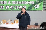 (누리일보) 남양주시는 8일 별내면 에코랜드에서 별내 축구 동호회 별내축구협회(회장 이도훈)가 ‘2026년 별내축구협회 시무식’을 개최했다고 밝혔다. 이번 시무식은 2026년 별내축구협회의 힘찬 출발을 알리며 회원 간 화합과 결속을 다지기 위해 마련됐다. 이어 진행된 안전기원제에서는 올 한 해 각 팀의 안전하고 건강한 생활체육 활동을 함께 다짐했다. 이날 행사에서는 주광덕 남양주시장을 비롯해 국회의원, 도·시의원, 별내동과 별내면 체육회장 및 임원, 별내누리 여성축구단 등 별내축구협회 소속 21개 축구팀 회원 등이 참석해 한 해 동안의 화합과 안전한 경기 운영을 기원했다. 이날 행사에서는 주광덕 남양주시장을 비롯해 국회의원, 도·시의원과 별내축구협회 소속 21개 축구팀 회원 등 150여 명이 참석해 한 해 동안의 화합과 안전한 경기 운영을 기원했다. 이도훈 회장은 인사말을 통해 “별내축구협회 21개 팀이 서로 존중하고 배려하는 마음으로 화합해 건강한 생활체육 문화를 만드는 데 앞장서겠다”고 말했다. 주광덕 시장은 “시민 누구나 1인 1체육을 즐길 수 있는 환경을 만들기 위해 노력해왔다”