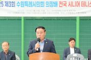 (누리일보) 수원특례시의회는 9월 24일 만석공원 테니스장에서 열린 ‘제3회 수원특례시의회 의장배 시니어 테니스대회 개회식’ 참석했다. 이번 대회는 테니스를 사랑하는 시니어 동호인들이 한자리에 모여 기량을 겨루고 화합하는 자리로 마련됐다. 개회식에는 이재식 의장을 비롯해 오세철 예산결산특별위원장, 김동은 의원, 이재선 의원, 현경환 의원, 수원시 체육회 관계자 등이 함께해 선수들을 격려했다. 이재식 의장은 축사에서 “오늘은 테니스를 사랑하는 분들이 모두 모인 뜻깊은 날”이라며 “양일간의 대회가 부상 없이 안전하게 마무리되길 바라며, 여러분 모두의 승승장구를 힘껏 응원하겠다”고 말했다. 이어 “수원특례시의회는 시민들께서 생활체육을 통해 활기차고 건강한 일상을 누리실 수 있도록 적극 지원하겠다”고 덧붙였다.