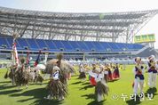 (누리일보) 용인특례시는 제66회 한국민속예술제 청소년부 경연에 경기도 대표로 참가하는 용인시청소년연희단이 27일 용인미르스타디움의 ‘2025 대한민국 조아용 페스티벌’ 행사장에서 출정식을 겸한 전통 놀이 시연을 했다고 28일 밝혔다. 문화체육관광부와 충청북도, 영동군이 26~28일 영동군민운동장에서 주최하는 이번 예술제에서 10대 청소년 50여 명으로 구성된 용인시청소년연희단은 박창배 총감독의 연출로 28일 용인의 전통 민속놀이인 ‘용인거북놀이’를 공연할 예정이다. 용인시청소년연희단은 지난해 10월 용인특례시 동천배수지에서 열린 제26회 경기도민속예술제에서 ‘용인거북놀이’로 대상을 수상해 올해 경기도 대표로 2025년 한국민속예술제에 참가하게 됐다. ‘용인 거북놀이’는 추석 무렵 용인의 마을 청소년들이 거북 모양 탈을 쓰고 집집마다 돌며 벌이던 민속놀이로 마을의 안녕과 풍요를 기원하던 놀이다. 이상일 시장은 용인시청소년연희단 출정식에서 “지난해 경기도민속예술제에서 대상을 받고 경기도 대표로 한국민속예술제억 참가하는 용인시청소년연희단이 제30회 용인시민의 날을 맞아 출정식과 공연 시연을 하는 것을