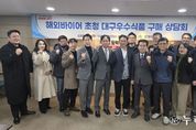 (누리일보) 대구광역시는 3월 6일 오전 10시 시청 동인청사 소회의실에서 해외 바이어 초청 ‘대구우수식품 구매상담회’를 개최하고 지역 우수식품의 해외 판로 개척에 나섰다. 이번 행사는 대구우수식품의 수출 확대와 글로벌 시장 진출 기반을 마련하기 위해 추진됐다. 대구시가 안전성과 품질을 인증한 ‘대구우수식품 인증제도’를 기반으로 기업이 주도적으로 해외 바이어를 발굴·주선해 마련한 자리라는 점에서 의미가 크다. 이날 상담회는 대구우수식품 인증기업인 영농조합법인 팔공김치(대표 김태종)가 주관했으며, 인증기업 9개사*가 함께 참여했다. * 홍두당(단팥빵 등), 풍국면(풍국면 등), 맛잽이식품(양념닭발 등), 위버멘쉬코리아(알찬옥수수볼), 일월한과(대추유과 등), 농업법인회사 영풍(요뽀끼 치즈 떡볶이), 달구지푸드(훈제돼지막창 등), 나드리(전통잡채 등), 휴먼웰(더블업 김부각 등) 참가 기업들은 제품 경쟁력과 해외시장 진출 전략을 설명하고, 바이어와 가격·유통 조건·현지 판매 가능성 등을 중심으로 심도 있는 협의를 진행했다. 특히 바이어가 현장에서 제품을 직접 확인하며 상담이 이뤄졌으며, 그 결과 약