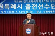 (누리일보) 수원특례시의회는 1일 수원시체육회관 2층 대회의실에서 열린 '제72회 경기도체육대회 수원시 선수단 결단식'에 참석해 선수단을 격려하고 선전을 기원했다. 이번 결단식은 오는 4월 16일부터 18일까지 광주시에서 열리는 제72회 경기도체육대회를 앞두고 수원시 선수단의 각오를 다지고 사기를 높이기 위해 마련됐다. 이날 행사에는 수원특례시의회 의장을 비롯해 수원시장, 수원시체육회장, 체육회 임원, 선수단 등 약 180여 명이 참석했으며, 출전보고와 단기 수여, 선수대표 선서 등이 진행됐다. 특히 수원시는 총 473명의 선수단이 출전해 27개 종목에서 기량을 겨룰 예정이다. 수원특례시의회는 결단식에 참석해 선수단의 사기를 북돋고, 시민과 함께하는 체육도시 수원의 위상을 높이기 위한 응원의 뜻을 함께했다. 이재식 의장은 축사를 통해 “그동안 흘린 땀과 노력이 결실을 맺을 시간이 다가왔다”며 “수원 선수단이 최고의 기량과 스포츠 정신으로 대회에 임해 시민들에게 큰 감동을 전해주길 바란다”고 말했다. 이어 “결과도 중요하지만 정정당당한 경기와 서로를 믿는 팀워크가 더욱 빛날 것”이라며 선수단의 선전을