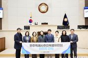 (누리일보) 원주특례시의회 원주특례시추진특별위원회(위원장 손준기)는 1월 29일, 수원특례시의회를 방문해 특례시 운영 사례를 청취하고 향후 추진 방향에 대해 의견을 나눴다. 이번 기관방문은 특례시 운영에 따른 의회의 역할과 정책적 성과를 공유하고, 원주특례시 추진 과정에 참고할 수 있는 방향을 모색하기 위해 마련됐다. 이날 방문에는 수원특례시의회 이재식 의장과 더불어민주당 김동은 교섭단체 대표가 참석했으며, 원주특례시의회에서는 원주특례시추진특별위원회 위원장과 위원들이 함께했다. 참석자들은 간담회를 통해 특례시 지정 이후 의회 운영 변화와 주요 정책 추진 과정, 의회의 역할 강화 방안 등에 대해 폭넓은 의견을 교환했으며, 특례시 제도의 안정적 정착을 위한 협력 필요성에 공감했다. 간담회 이후에는 수원특례시의회 본회의장 등 주요 시설을 둘러보며 의회 운영 전반에 대한 이해를 높이는 시간도 가졌다. 수원특례시의회 이재식 의장은 “이번 방문이 특례시를 준비 중인 지방의회 간에 경험과 정보를 공유하는 뜻깊은 계기가 됐다”며 “앞으로도 특례시 제도가 현장에서 실질적인 성과로 이어질 수 있도록 의