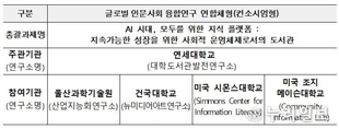 (누리일보) 교육부와 한국연구재단은 9월 5일, 2025년 글로벌인문사회융합연구 연합체(컨소시엄)형의 신규 선정 결과를 발표한다. ‘글로벌인문사회융합연구 지원사업’은 해외 연구소와의 협업을 통해 연구 네트워크를 확장하고 공동연구를 통한 국제 연구 역량 강화를 위해 2024년 부터 추진해 왔다. 올해는 연합체형(컨소시엄형)을 신설했으며 시범운영으로 1개 연합체(컨소시엄)를 선정하여 총 5년간(3+2) 연 20억 원 규모로 지원하고자 한다. 연합체형은 5개의 연구소가 협의체를 구성하여 연구소 간의 협력체계를 구축하되 반드시 해외 연구소를 포함해야 하며, 개별 연구소는 세부과제 및 연구계획을 자율적으로 수립하여 집중적으로 연구를 수행하게 된다. 아울러, 연합체(컨소시엄)를 구성하고 있는 연구소 간의 실질적 협업이 가능하도록 업무협약(MOU)을 체결하여 유기적이고 안정적인 협력관계를 구축해야 하며, 공동연구 활성화를 위해 정기적인 성과 공유 활동 및 연구소 인력 교류 등을 포함한 연구계획서를 수립하고 총괄협의체 구성을 통해 구체적인 연계 활동을 추진해야 한다. 올해 선정된 연합체(컨소시엄)의 연구 주제는