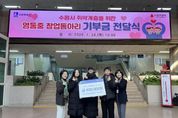 (누리일보) 수원 영통중학교 창업동아리 학생들이 창업 활동 수익금을 모아 수원시 취약계층 시민을 위해 기부했다. 1월 29일 수원시청 본관 1층 로비에서 열린 기부금 전달식에는 윤영숙 시민복지국장, 영통중학교 창업동아리 학생 등이 참석했다. 학생들은 직접 디자인·제작한 탁상용 달력 100개를 판매해 마련한 수익금 45만 원을 수원시에 전달했다. 수원시는 기부금을 취약계층 시민 지원을 위해 사용할 예정이다. 영통중학교 창업동아리 학생들은 “작은 나눔이지만 어려운 이웃들에게 도움이 되기를 바라는 마음으로 기부에 참여했다”며 “직접 만든 작품으로 나눔을 실천할 수 있어 기쁘다”고 소감을 밝혔다. 윤영숙 시민복지국장은 “학생들이 활동 수익금으로 이웃사랑을 실천한 모습이 대견하다”며 “따뜻한 나눔이 지역사회 전반으로 확산되기를 바란다”고 말했다.