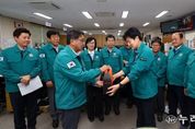 (누리일보) 강원특별자치도의회 안전건설위원회는 9월 10일 강원특별자치도 재난안전실을 방문해 최근 선포된 강릉 가뭄 재난사태에 관한 대응 상황을 점검하고, 현장에서 대응에 힘쓰고 있는 직원들을 격려했다. 강릉시는 기록적인 강수 부족으로 생활용수와 농업용수 확보에 큰 어려움을 겪고 있으며, 이에 정부는 강릉 가뭄을‘국가재난사태’로 선포하고 전 행정력을 동원해 대응에 나서고 있다. 이에 도의회 안전건설위원회 위원들은 강원특별자치도 재난안전실을 방문하여 가뭄 피해 현황과 향후 대책을 보고받고, 도민의 안전과 불편 해소를 위해 최일선에서 힘써온 직원들의 노고를 높이 평가하며 감사의 뜻을 전했다. 아울러, 재난 장기화에 따른 인력 피로도와 업무 부담을 고려해 근무 여건 개선과 지원책 마련의 필요성도 강조했다. 특히 안전건설위원회 최규만 위원장은 “강릉 가뭄 재난사태는 도민의 삶 전반을 위협하는 엄중한 상황”이라며 “도의회는 집행부와 협력해 실질적인 지원 방안을 마련하고, 가뭄 극복과 재난 대응 역량 강화를 위해 최선을 다하겠다”고 밝혔다.