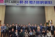 (누리일보) 제주테크노파크(원장 지영흔, 제주TP)는 지난 28일 경상북도 경주시에서 열린‘2025 APEC(아시아태평양경제협력체)’ 연계 행사에서 경주시 및 사단법인 중소기업융합대구경북연합회 경주융합회(회장 김상헌)와 함께 제주·경주 기업 간 상생 협력 네트워크 회의를 개최했다고 3일 밝혔다. 이번 회의는 지난 9월 체결한 업무협약의 후속 조치로, APEC 의제에 기반한 중소기업 혁신 및 디지털 전환 협력 방안을 논의하고 지역 간 산업 교류를 강화하기 위해 마련됐다. 제주TP는 이를 통해 제주기업의 기술·제품 홍보 및 판로 확대를 지원할 계획이다. 이날 회의에서는 교촌에프앤비(주)가 제주특산 원료인 메밀과 무 100%를 활용한 신제품 개발 협력 방향을 제시했으며, 제주특화산업 중 식품산업 분야에서의 메밀 산업 육성을 위한 마케팅 및 홍보 사업 추진 의지를 밝혔고, 제주TP와의 협업을 통해 제주시장 진출과 지역 산업의 상생을 기대하고 있다. 또한 (주)다엘(무인사진촬영기업)은 지난달 체결한 MOU를 기반으로 제주 입점을 추진하며, 제주TP가 주관하는‘제주산업발전포럼’에 경주융합회 기업과 공동 참여해 제주 관광