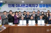 (누리일보) 강원특별자치도교육청은 11월 6일 인제군청 2층 소회의실에서 인제군청, 인제교육지원청과 ‘인제 더나은교육지구 연장지정 업무협약’을 체결했다. 이번 협약은 2018년 제1기(4년), 2022년 제2기(4년)에 이어, 2026년부터 4년간 제3기 더나은교육지구 사업을 본격 추진하기 위해 마련됐다. 세 기관은 ‘인제에서 더나은 인재를 함께 키우다’라는 비전 아래, 지역 여건을 반영한 교육 협력 사업을 추진하기 위해 매년 4억 원(교육청 2억 원, 군 2억 원)을 지원한다. 인제 더나은교육지구는 지역의 특수성을 반영해, 지역 기반 돌봄·배움터를 통한 전인적 성장 지원 및 지역 교육생태계 조성을 목표로 한다. 지구중점 공동사업인 지역 특화 프로그램 ‘인제닮은인재프로젝트’를 통해 지역 인적 역량과 자원을 연계한 교육생태계를 구축하고, 학생들에게 지역의 역사·문화·생태를 체험할 수 있는 기회를 제공하고 있다. 지역 자원 연계 중심의 마을자람터 사업으로 △학부모 행복성장 프로젝트 △인제 꿈자람 어린이 큰 잔치 △디지털 세상 속 리더 되기 △나라사랑! 병영체험! 등을 운영한다.