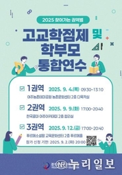 (누리일보) 경기도여주교육지원청은 2025년 9월 4일부터 12일까지 총 3개 권역에서 지역 내 학부모를 대상으로'2025 찾아가는 권역별 고교학점제 및 통합 학부모 연수'를 운영한다. 이번 연수는 여주 지역의 특색과 학부모들의 참여를 확대하고자, 오전과 야간으로 나누어 대면 방식으로 진행된다. 세 권역으로 구성된 본 연수는 여주농촌테마공원, 한국콜마 여주아카데미, 푸르메소셜팜 등에서 각각 진행되며, 관내 초‧중‧고 학부모 및 지역 주민 등이 참여할 예정이다. 연수는 다음과 같은 두 가지 중심 강연으로 구성된다. 1강은 고3 담임 및 3학년부장을 여러 해 역임하며 대입 현장을 직접 경험한 현장 교사의'우리 지역 맞춤형 고교학점제, 이렇게 대비하자'라는 주제로, 고교학점제의 실질적 운영 방향과 진학 연계 전략을 제시한다. 2강은'디지털 세상 속 갈등 해결하기'라는 주제로, 초등 현장에서 디지털 시민교육을 실천해 온 현장 교사가 사이버폭력, 사회정서교육 등 디지털 환경에서의 자녀 지도를 위한 구체적인 실천 방안을 제시한다. 이외에도 ▲세종같이공유학교와 세종같이학교 교육과정 ▲취창업교육 ▲미래교육협력지구