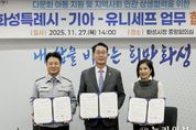 (누리일보) 화성특례시가 27일 시청 중앙회의실에서 유니세프 한국위원회, 기아 주식회사와 ‘다문화아동 지원 및 지역사회 민관 상생 협력을 위한 업무협약’을 체결했다. 이날 협약은 UN아동권리협약에 근거해 다문화아동의 권리를 증진하고 교육·복지 지원체계를 구축하기 위해 추진된 것으로, 민관이 협력해 ‘다문화아동 맞춤형 지원사업’을 운영하고자 마련됐다. 협약에 따라 각 기관은 다문화아동을 대상으로 안정적인 공교육 진입 및 지역사회 정착을 지원하기 위한 맞춤형 한국어 교육과 한국 역사 및 문화교육 제공하는 데 협력한다. 관내 이주배경청소년 지원 전담기관인 화성시글로벌청소년센터(지구별화성)가 맡아 다문화아동 및 미등록 이주 아동 발굴과 프로그램 운영 등을 담당하며, 기아 주식회사와 유니세프 한국위원회는 사업비 및 운영을 지원한다. 이날 협약식에는 정명근 화성특례시장, 송민수 기아 화성공장장, 조미진 유니세프 한국위원회 사무총장이 참석해, 관내 다문화아동 지원을 위해 상생 협력할 것을 다짐했다. 정명근 화성특례시장은 “화성특례시는 아동친화도시로 국적이나 출생 등록 유무와 관계없이 아동들은 보호받