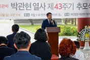 (누리일보) 이정선 광주시교육감이 12일 국립5·18민주묘지 ‘역사의 문’ 앞에서 열린 ‘민주화의 새벽기관차 박관현 열사 제43주기 추모식’에 참석했다. 이날 추모식에는 이정선 교육감을 비롯해, 강기정 광주광역시장, 윤목현 5·18기념재단 이사장, 이개호 영광군 국회의원, 유족 및 시민사회단체 관계자 등이 참여해 열사의 숭고한 뜻을 기렸다. 이정선 교육감은 “박관현 열사의 숭고한 정신을 잊지 않고 기억하는 길은 5·18 정신을 미래 세대에 계승하고 발전시키는 교육이다”며, “오월 정신을 전국으로, 세계로 알리고 확산하여 민주주의와 인권, 평화의 가치를 교육 현장에서 실천해 나가겠다”고 밝혔다.
