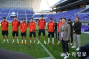 (누리일보) 김진태 강원특별자치도지사(구단주)는 11월 3일 오후 3시, 일본 히로시마 에디온 피스 윙 스타디움을 방문해 아시아챔피언스리그 조별리그 원정경기를 앞두고 훈련 중인 강원FC 선수단을 격려하고 응원의 메시지를 전했다. 이날 선수들이 훈련 중인 에디온 피스 윙 스타디움은 내일(4일) 경기가 열릴 장소로, 구단주인 김진태 지사는 시합 하루 전 경기장을 찾아 라커룸, 웜업존, 원정응원석 등을 둘러보며 부족한 점이 없는지 점검하고 선수단 지원에 부족함이 없도록 만전을 다할 것을 당부했다. 정경호 감독은 “선수 모두가 ‘강원’의 이름을 가슴에 새기고 경기에 임하고 있다”며, “도민과 팬들의 기대와 응원에 보답할 수 있도록 최선을 다하겠다”고 감사의 뜻을 전했다. 김시성 도의장은 “내일 경기에 500명이 넘는 응원단이 원정석을 가득 메워 목이 터져라 응원할 예정”이라며, “열심히 응원할 테니 기죽지 마시고 파이팅해 달라”고 말했다. 구단주인 김진태 지사는 “일본에서 우리 선수들을 만나니 감개무량하다”며, “긴장하지 말고 대한민국 강원FC라는 긍지를 가지고 평소처럼 실력을 발휘해 달라”는 격려와 함