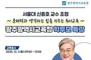 (누리일보) 광주시교육청이 오는 12월 1일 오전 9시 40분 광주시교육청교육연수원 대강당에서 서울대학교 교육학과 신종호 교수 초청 학부모 특강을 진행한다. 이번 특강은 ‘문해력과 생각하는 힘을 키우는 독서교육’을 주제로, 학부모에게 가정에서의 안정적인 독서환경 조성과 문해력·사고력 향상을 위한 학부모의 역할 등을 알리는 시간으로 진행된다. 신종호 교수는 문해력, 학습심리, 교육평가 분야의 권위자로, 한국교육심리학회 등 다양한 학술단체에서 활동하고 있다. 또한 tvN ‘유 퀴즈 온 더 블록’, EBS 미래교육플러스 등 방송과 ‘읽는 아이가 미래를 지배한다’, ‘공부머리 독서법’ 등 저술 활동을 통해 대중과 활발히 소통하고 있다. 관심 있는 광주 지역 학부모면 누구나 천명 선착순으로 참여할 수 있다. 참가를 원하는 학부모는 오는 28일까지 안내된 QR코드 및 네이버 폼을 통해 신청이 가능하다. 이와 더불어 시교육청은 강의 당일 행사장 주차 공간 협소로 인해 참석자들의 대중교통 이용을 적극 권장하고 있다. 이정선 교육감은 “문해력은 단순히 글을 읽는 능력이 아니라