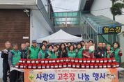 (누리일보) 포천동새마을부녀회와 새마을지도자협의회은 지난 10월 31일 포천동행정복지센터에서 사랑의 고추장 나눔 행사를 실시했다. 이날 행사에서는 포천동 남·여 새마을지도자와 양성환 포천동장을 비롯한 포천동 직원이 함께 150명 분의 고추장을 만들어 포천동 홀몸 어르신을 비롯한 관내 150여 가구에 전달하며 이웃사랑을 실천했다. 이효순 부녀회장은 “같이 잘 사는게 제일 좋은데 우리 이웃들이 조금이나마 따뜻한 마음을 느끼고 생활하시길 바란다. 앞으로도 계속 봉사활동을 실천하여 행복한 포천동을 만들어 보겠다”고 말했다. 한편, 포천동 남·여 새마을지도자와 새마을부녀회는 매년 송편, 열무, 고추장, 김장김치 등을 담가 어려운 이웃에게 전달하며 지역사회 봉사에 앞장서고 있다. 양성환 포천동장은 “어려운 이웃을 위해 여러 봉사활동을 하시는 남녀새마을지도자· 새마을부녀회에 감사하다. 행정적 지원을 통하여 이런 봉사활동과 나눔 문화가 지속되고 확산되도록 노력하겠다”고 밝혔다.