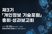 (누리일보) 개인정보보호위원회는 12월 22일 서울 용산구에서 개인정보 기술개발 활성화 및 산업 생태계 기반 구축을 위한 제3기 '개인정보 기술포럼(의장 정수환 숭실대 교수)' 총회·성과보고회를 개최했다. 올 한 해 기술포럼은 데이터 경제 시대에 개인정보의 보호와 안전한 데이터 활용을 위하여 공개세미나(1회), 미니세미나(2회) 및 3개 분과별(정책·기술·표준화) 연구모임(18회) 등을 통해 ‘AI 프라이버시 분야 국내외 법제·정책 동향 및 비교 연구’, ‘AI 발전주기와 프라이버시 이슈 분석 연구’ 등 성과를 창출했다. 이날 총회 1부에서는 정수환 의장의 개회사를 시작으로, 이정렬 개인정보위 부위원장의 환영사와 이상중 한국인터넷진흥원 원장의 축사가 이어졌다. 이후 ’25년 제3기 기술포럼의 주요 성과 및 ’26년 기술포럼 운영 방향에 대한 보고회가 진행됐다. 이어서 2부에서는 정책, 기술, 표준화 3개 분과별로 주요 성과를 발표·공유하는 시간을 가졌다. 현장에는 그간 개인정보위가 추진해온 개인정보 기술 연구개발(R&D) 사업 중 올해 기술개발이 완료된 기술 일부의 시연 부스를 설치하여, 총회를 찾은 참석자에게