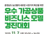 (누리일보) 충남도 농업기술원은 오는 11월 7일 농가공경영체와 전문가, 일반 소비자 등 300여 명이 참석한 가운데 ‘2025년 우수 가공상품 비즈니스 모델 경진대회’를 개최한다고 30일 밝혔다. 이번 대회는 지역 농업인이 직접 개발·생산한 농산물 가공상품의 경쟁력과 사업성을 평가하고, 소비자와의 소통을 통해 충남 농산물의 새로운 시장가치를 확산하기 위해 마련했다. 행사장에서는 15개 시군을 대표하는 농업경영체 30여 곳이 참여해 지역 농산물을 활용한 다양한 가공상품을 선보인다. 도 농업기술원은 창의성·브랜드 이미지·시장성 등 3개 항목에서 전문가 심사를 거쳐 도지사상 4점을 수여할 예정이다. 일반 소비자가 직접 참여하는 ‘소비자 반응조사’도 함께 진행된다. 조사는 소비자들이 각 제품의 맛·당도·식감 등을 평가하고, 가장 선호하는 상품에 투표하는 방식인 만큼 단순한 품평을 넘어 소비자 중심의 제품 개선 방향을 제시하는 현장형 데이터로 활용할 계획이다. 소비자 참여 확대를 위해 ‘지역농산물 활용 바른 식생활 체험 프로그램’도 운영한다. 주요 프로그램으로는 우리