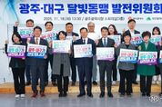 (누리일보) 광주광역시와 대구광역시가 18일 시청 3층 소회의실에서 ‘광주·대구 달빛동맹 발전위원회’를 열어 두 도시 간 실질적인 협력 강화 방안을 논의했다. 이날 회의에서는 기존 공동 협력과제의 추진 상황을 공유하고, 신규 협력과제 심의와 정부·국회에 전달할 메시지 퍼포먼스를 진행했다. 두 도시는 지난 9월17일 국회에서 오랜 숙원사업인 달빛철도 건설사업의 예비타당성조사 면제를 촉구하는 공동선언문을 발표했다. 이어 군공항 조기 이전, 식품·뿌리·의료·로봇산업 내 특별관 운영, 달빛동맹 자원봉사 교류, 문화예술 교류 등 5개 분야 35개 과제에 대해 지속 협력했다. 이날 회의에서는 달빛동맹의 협력 강화를 위해 지난달 15일 실무회의에서 논의됐던 신규 과제 11건을 심의·의결했다. 주요 신규 협력과제는 ▲광주・대구 AX 거점도시 조성 ▲AI 융합 핵심인재 공동 양성 ▲미래모빌리티산업 육성 공동과제 발굴 ▲‘5극3특 전략’ 실현을 위한 공공기관 2차 이전 등이다. 고광완 행정부시장은 “이번 회의는 달빛동맹의 실질적 협력을 더욱 구체화하는 계기가 됐다”며 “앞으로도 두 도시가 지속적으로 협력