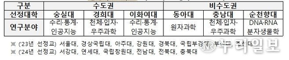 (누리일보) 교육부와 한국연구재단은 8월 21일, 대학기초연구소(G-LAMP) 사업의 2025년도 신규 지원 대학의 예비 선정 결과를 발표한다고 밝혔다. 대학기초연구소 지원 사업은 기초과학 분야의 거대 융복합 연구를 지원하고, 대학의 연구소 관리 체계를 혁신하기 위해 2023년부터 시작됐다. 2023년 8개를 시작으로 2024년 6개 대학이 지정됐고, 올해 6개 대학을 선정할 예정이다. 그간 본 사업은 대학의 연구 역량 제고를 위한 학내 연구조직의 합리화 및 관리 체계 확립, 개별 연구소 활동 프로그램 운영 지원, 신진 연구자의 연구 활동 인프라 구축 등을 중점적으로 지원하여 왔다. 올해 신규로 선정되는 대학은 총 5년(3년+2년) 동안 매년 평균 50억 원 규모의 재정지원을 받고, ➀대학 내 연구소 관리‧지원 강화, ➁기초과학 분야의 거대 융복합 연구를 집중적으로 수행하게 된다. 특히, 올해부터는 대학 내 연구소 관리에 보다 집중하기 위해 지원 예산의 20% 이상을 연구소 관리 체계 확립에 편성‧활용할 수 있도록 했다. 또한, 연구 분야도 자연과학 외 ‘공학’ 등의 분야까지 확장하여 신진 연구 인력이 학과 간