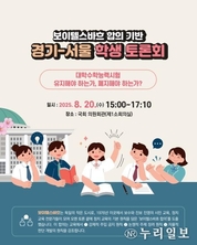 (누리일보) 경기도교육청이 20일 서울특별시교육청 국회 교육위원장 김영호 의원과 함께 ‘보이텔스바흐 합의 기반 경기-서울 학생 토론회’를 공동 개최한다. 학생들에게 보이텔스바흐 원칙을 바탕으로 교육을 포함한 정치·사회 분야에 적극적인 토론 기회를 제공하고자 마련한 자리다. 국회 의원회관 1소회의실에서 열린 이번 토론회에는 임태희 교육감과 정근식 서울특별시교육감, 국회 교육위원회 김영호 의원을 비롯해 지역별 중·고등학생 등 모두 100여 명이 참석할 예정이다. 보이텔스바흐 합의는 1976년 독일에서 제정된 정치교육의 기본 원칙으로 ▲강제적 주입 금지 ▲논쟁적 주제 장려 ▲자신의 이해관계에 따른 판단을 강조한다. 토론회는 이 같은 합의를 바탕으로 경기·서울 지역 학생들이 토론 문화를 직접 체험하고, 비판적 사고와 열린 시민의식을 함양할 수 있도록 지원하기 위해 준비했다. 참석한 경기·서울 학생들은 올해로 32회째를 맞는 ‘대학수학능력시험 제도 유지해야 하는가, 폐지해야 하는가?’를 주제로 두 차례 토론을 진행한다. 토론자들은 1차와 2차 토론에서 서로의 입장을 바꿔 의견을 제시하고, 상대방의 의견을 경