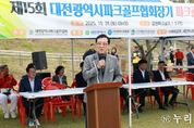 (누리일보) 대전시의회 조원휘 의장은 25일 갑천파크골프 1구장(유성구 탑립동)에서 개최된 제15회 대전광역시협회장배 파크골프대회에 참석해 안전한 대회 진행을 기원하며, 일류 체육도시 대전 조성을 위한 정책적 관심과 지원을 약속했다. 이날 대회는 지역을 대표하는 단체·기관장, 임원 및 선수, 시민 등 350여 명이 참석한 가운데 시 협회장의 대회사, 주요내빈 축사, 기념촬영 등의 개회식을 마친 뒤 남녀와 시니어·일반부로 나눠 18홀 스트로크 방식의 본격적인 대회로 이어졌다. 조원휘 의장은 “대전에는 유등천, 갑천, 을미기공원 등 6곳, 총 99홀의 파크골프장이 운영되고 있으며, 시민들의 참여가 늘면서 이제는 파크골프가 대전의 대표적 생활체육으로 자리잡았다”면서, “시민들의 관심과 수요가 커지는 만큼 동구 용운동에 2026년 12월까지 4,600여 평, 성북동에 2029년까지 최대 90홀 규모의 파크골프장이 조성되는 등 대전시의회는 시민들의 체육인프라 조성에 많은 노력을 기울이고 있고, 앞으로도 시민 모두가 파크골프를 비롯한 다양한 생활체육을 언제, 어디서나 즐길 수 있도록 의회 본연의 역할에 최선을 다하겠다”고 말했다.