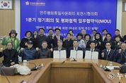 (누리일보) 민주평화통일자문회의 포천시협의회는 지난 2월 27일 포천시청 시정회의실에서 ‘2026년 1분기 정기회의 및 평화통일 협력 업무협약 체결식’을 개최했다. 이번 행사는 조용춘 협의회장을 비롯한 자문위원들과 업무협약 체결 기관 관계자, (사)공정평화통일국민연대 포천시지회 및 기후위기 포천시민행동 관계자 등이 참석했다. 1부 정기회의에서는 지역 내 통일 기반 조성을 위한 정책 건의와 의견 수렴이 이루어졌으며, 2026년 상반기 주요 사업에 대해 논의했다. 2부 행사에서는 지역 시민단체와 업무협약을 체결했다. 이번 협약을 통해 각 기관은 평화통일을 위한 협력 체계를 공고히 구축하기로 뜻을 모았다. 또한, 이날 행사에서는 평화통일 기반 구축에 기여한 공로로 임지은 자문위원이 경기도지사 표창을 전수받는 영예를 안았다. 조용춘 협의회장은 개회사를 통해 “이번 정기회의는 급변하는 정세 속에서 한반도 평화 공존을 위한 실천적 방안을 모색하는 뜻깊은 자리”라며, “지역 시민단체와 긴밀한 협력을 통해 포천시가 평화통일의 마중물 역할을 수행할 수 있도록 자문위원들의 지혜를 모아달라”고 당부했다.