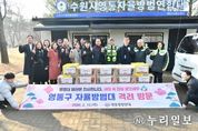 (누리일보) 수원시 영통구는 지난 12일 영통발전연대가 다가오는 설 명절을 맞아 영통구 자율방범대 초소를 방문하여 격려 물품을 전달했다고 밝혔다. 영통구 자율방범대는 각종 범죄·사고가 우려되는 관내 취약 구역을 집중 순찰하며 안전한 지역사회를 조성하기 위해 활동하고 있는 자율적인 자원봉사 단체이다. 이영종 영통발전연대 회장 및 임원들은 영통구 매탄3지대를 비롯한 5개 동 자율방범대 초소를 방문해, 명절을 앞두고도 지역 치안 강화를 위해 힘쓰고 있는 대원들의 노고를 격려했다. 이영종 영통발전연대 회장은 “바쁜 와중에도 늦은 밤까지 지역 안전을 위해 기꺼이 헌신하시는 대원 여러분의 노고에 진심으로 존경과 감사를 표한다”며 “여러분의 헌신으로 영통구가 범죄 없는 안심 마을로 자리 잡을 수 있었던 만큼, 앞으로도 주민들이 평온한 일상을 누릴 수 있도록 든든한 파수꾼이 되어주시길 부탁드린다”고 말했다. 장수석 영통구청장은 “지역 공동체의 안전을 위해 자발적으로 봉사에 참여해 주시는 자율방범대원 여러분께 깊이 감사드린다. 앞으로도 자율방범대와 함께 소통하며 영통구 발전을 위해 최선을 다하겠다”고 말했다. &