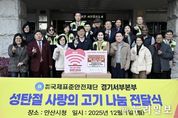 (누리일보) 안산시는 지난 1일 국제표준안전재단 경기서부본부 안산지회로부터 양념불고기 300개(개당 1kg, 600만 원 상당)을 기탁받았다고 2일 밝혔다. 국제표준 안전재단 경기서부본부 안산지회는 세계 최초 재난 예방 안전 분야 ISO 17024 공인 재난·보건 안전 전문교육기관으로 지역사회를 위해 다양한 봉사와 나눔 활동을 이어 나가고 있다. 김태연 본부장은 “안산시 취약계층을 위해 기부하게 돼 기쁘다”며 “지역사회 안전과 복지, 환경 개선을 위한 공익 활동을 지속해 나가고 시민과 함께 만드는 안전 문화 확산에 최선을 다할 것”이라고 말했다. 이에 이민근 안산시장은 “힘든 경제 상황에서도 따뜻한 나눔을 실천해 주신 국제표준 안전재단 경기서부본부 안산지회 김태연 본부장님과 회원님들께 깊이 감사드린다”며 “관내 어려운 이웃에게 소중한 마음을 담아 잘 전달하겠다”고 화답했다. 한편, 이날 기탁받은 후원품은 경기사회복지공동모금회를 통해 안산시 저소득층 등에게 전달될 예정이다.