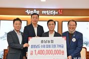 (누리일보) 충남도는 3일 도청 접견실에서 충남농협으로부터 호우 피해 복구를 위한 지정 기탁금 총 14억 원을 전달받았다. 이날 기탁금 전달식에는 김태흠 지사와 정해웅 농협중앙회 충남세종본부장, 박장순 NH농협은행 충남본부장, 문은수 대한적십자사 충남지사 회장 등이 참석했다. 이번 지원금은 농협 전 계열사 및 임직원이 기부한 50억 원 중 7개 시도에 배분되는 40억 원 가운데 35%에 달하는 규모로, 충남농협이 도내 호우 피해 지원을 위해 노력한 결과다. 기탁금은 대한적십자사 충남지사를 통해 지난 7월 호우로 침수 피해를 입은 가구를 지원하는 데 사용할 계획이다. 이 자리에서 김 지사는 호우 피해로 힘든 시간을 보내고 있는 도민을 위해 솔선수범 기부에 참여한 농협 전 계열사 및 임직원들과 농협에 깊은 감사를 전하고 피해 농가와 지역민의 조속한 일상 복귀를 위해 최선을 다할 것이라고 말했다.