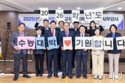 (누리일보) 경기도의회 교육기획위원회(위원장 안광률)는 11월 12일, 2026학년도 대학수학능력시험을 하루 앞두고 수험생들을 노고를 격려하고 희망의 메시지를 전하기 위해 응원 시간을 가졌다. 이번 응원은 2025년도 행정사무감사 일정 중 경기도교육복지종합센터에서 진행됐으며, 위원들은 "2026학년도 수능대박을 기원합니다" 문구가 적힌 카드섹션을 들고 따뜻한 격려의 마음을 전했다. 안광률 위원장은 “수능은 단 하루지만, 그날을 위해 흘린 땀방울과 노력의 시간은 누구보다 길고 깊었다”며, 이어 “경기도의회는 그 노력의 결실 위에서 모든 수험생이 환하게 웃을 수 있기를 바라며, 여러분의 내일을 진심으로 응원한다”고 덧붙였다. 또한 안 위원장은 “경기도교육청은 유관기관과 긴밀히 협력해 만일의 상황 속에도 신속히 대응할 수 있는 체계를 갖춰달라”며, “모든 수험생이 공정하고 안정된 환경에서 시험을 치를 수 있도록 만전을 기해달라”고 당부했다. 이날 교육기획위원회 위원들은 한목소리로 “수험생 여러분, 그동안 정말 수고 많았습니다. 끝까지 포기하지 말고, 자신을 믿고 나아가시길 바랍니다”라며 따뜻한 응원을 보
