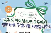 (누리일보) 파주시는 여성청소년의 건강과 복지 향상을 위해 2026년 3월부터 11~18세 파주시 여성청소년 모두를 대상으로 생리용품 지원금을 지급한다. 지원 대상자는 파주시에 주민등록, 외국인등록, 국내거소 신고가 되어있는 11~18세의 여성청소년으로 월 14,000원씩 연 최대 168,000원의 생리용품 구입비를 모바일 지역화폐로 지급하며, 해당 지역화폐는 생리용품 구매 전용으로 사용이 제한된다. 온라인의 경우 3월 5일 14시부터 경기민원24에서 신청이 가능하며, 방문 신청은 3월 4일부터 주민등록상 주소지 행정복지센터에서 접수한다. 지원금은 신청 이후 자격 조건 검증을 통해 4월 20일부터 순차적으로 지급되며, 신청 자격 확인을 위해 최소 2주 이상의 검토 기간이 소요될 것으로 예상된다. 지원금은 파주시 지역화폐 가맹점으로 등록된 4개 편의점(지에스(GS)25, 시유(CU), 이마트24, 세븐일레븐)과 배달특급 앱의 생리용품 전용몰(온라인)에서 사용할 수 있으며 해당 사용처에서 지원금 사용을 위해서는 경기지역화폐 앱 설치 및 가입이 필수인 점에 유의가 필요하다. 김지숙 청년청소년과장은 “청소