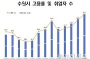 (누리일보) 수원에서 따뜻한 고용 훈풍이 불고 있다. 일자리 정책이 성공적인 결실을 맺고 있다는 것이 역대 최고의 지역 고용률 기록으로 드러났다. 첨단 산업 분야의 기업 유치와 지역 기업의 성장을 지원하는 정책들이 우수한 미래 일자리를 만들고, 지역상권 활성화를 자양분으로 지역과 주민이 상생하는 일자리들이 활성화된 덕분이다. 특히 수원시는 맞춤형 일자리 서비스를 지원하고, 취약 노동자들의 안전망을 구축하는 등 일자리와 노동 권익의 균형을 맞추는 공공의 노력을 강화해 왔다. ◇수원시에서 ‘고용의 봄’이 시작됐다 통계청이 발표한 2025년 상반기 수원시 고용률은 64.1%다. 수원시에 살고 있는 15세 이상 시민 100명 중 64명이 수입을 목적으로 일을 하고 있다는 의미다. 이 같은 고용률은 역대 최고치 기록이다. 국가통계포털(KOSIS)에서 공개하고 있는 26번의 조사 결과 중 가장 높다. 전년 동기인 2024년 상반기 61.5%, 직전 반기인 2024년 하반기 62.9%에서 지속 상승 중이다. 수원시 고용률이 60% 중반을 기록한 것은 처음이다. 통계청이 반기마다 실시하는 지역별고용조사에서 수원시