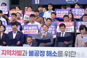 (누리일보) 광주 지역사회와 정치권이 고속열차(KTX) 호남선 운행 차별과 불공정 해소를 정부에 강력 촉구했다. 광주광역시는 광주광역시의회, 5개 자치구, 광산구의회, 시민 등과 함께 23일 광주송정역 광장에서 ‘KTX 호남선 차별·불공정 해소 촉구 결의대회’를 열고 KTX 운행 개선안을 정부에 건의했다. 이날 결의대회에는 강기정 시장을 비롯해 서용규 광주시의회 부의장과 시의원들, 박병규 광산구청장, 김명수 광산구의회 의장 등 30여명이 참석했다. 이들은 “KTX 호남선 운행 차별이 극심하다”며 당장 개선을 요구했다. 광주시는 평일 기준 1일 KTX 운행 횟수는 경부선 115회, 호남선 55회로 경부선이 2배 넘게 많다. 열차를 이용할 수 있는 공급 좌석은 경부선이 1일 9만9001석으로, 호남선 3만7573석보다 2.6배 많으며, 주말에는 경부선과 3배 차이로 벌어진다. 이는 고속열차 운행 배차 횟수뿐만 아니라 차량 규모(좌석수, 신형)에서도 차별하고 있다는 것이다. 실제 KTX 이용객이 많아지는 주말(금~일) 경부선 KTX는 1일 21회 증편하지만 호남선은