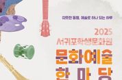(누리일보) 제주도교육청 서귀포학생문화원은 29일 문화원에서 ‘2025 서귀포학생문화원 문화예술 한마당’을 개최한다. 이번 행사는 ‘따뜻한 동행, 예술로 하나 되는 하루’를 주제로 학생과 보호자, 지역주민이 함께 어우러져 예술로 배우고 소통하는 문화예술공동체 축제로 마련됐다. 문화예술·예술영재·평생교육 수강생들이 한 해 동안 갈고닦은 실력을 선보이며 지역사회가 함께 참여하고 공감하는 뜻깊은 자리다. 특히 예술을 통해 함께 배우고 성장하는 지역 문화예술공동체 실현을 목표로 하며 수강생들의 작품을 통해 예술교육의 성과를 공유하고 세대 간 소통과 지역사회 참여의 기회를 제공한다. 이번 행사는 발표마당, 전시마당, 체험마당으로 운영된다. 발표마당에서는 문화예술·평생·예술영재교육 참가자 등 50개 팀이 무대에 올라 음악, 합창, 댄스, 밴드, 케이팝(K-pop) 공연 등 다채로운 무대를 선보인다. 전시마당에서는 수강생과 동아리, 예술영재교육 참가자가 제작한 드로잉, 회화, 조형, 제주어 시화 등 창의적 작품 390점이 전시된다. 체험마당에서는 과장 그림 초상화, 색채 치