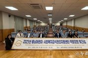 (누리일보) 충남도는 29일 혜전대 간호학술관에서 어린이·사회복지급식관리지원센터 직원 140여 명이 참석한 가운데, 특강에 이어 간담회 순으로 역량강화 연수를 실시했다고 밝혔다. 특강은 안경선 마음생활환경연구소 대표가 ‘기후위기에 대응하는 탄소중립 실천 방안’, 권세진 한국인공지능교육연구원 이사가 ‘인공지능(AI)을 활용한 업무 혁신’을 주제로 강의했다. 간담회에서는 센터 기능 내실화 및 상생발전 방안을 주제로, 참석자 모두 다양한 의견을 제시하는 등 소통의 시간을 가졌다. 급식지원센터는 시군이 민간위탁으로 추진하는 위생 및 영양관리 강화 사업으로, 영양사가 없는 소규모 급식시설에 위생·영양관리 등 급식관리 서비스를 제공하는 기관이다. 이헌희 건강증진식품과장은 “앞으로도 꾸준한 교육과 소통을 통해 직원들의 전문성을 높일 것”이라며 “아동·노인·장애인 등 도민을 위한 급식 관리 서비스의 질을 더욱 향상시켜 나가겠다”고 말했다.