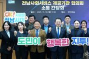 (누리일보) 김영록 전라남도지사는 10일 도청 정약용실에서 전남 지역사회서비스 제공기관 협의회 대표단 10명과 함께 간담회를 갖고, 전남도 지역사회서비스 투자사업 활성화 방안을 논의했다. 간담회에선 지역사회서비스 제공 과정의 애로사항과 건의사항을 청취하고, 내년도 통합돌봄 참여 등 지역사회서비스 발전 방향에 대해 폭넓은 의견을 나눴다. 박경래 전남지역사회서비스 제공기관 협의회장은 “지역사회서비스에 대한 적극적인 관심과 지원에 감사드린다”며 “앞으로 협의회가 현장과 행정을 잇는 든든한 연결고리가 되겠다”고 밝혔다. 김영록 지사는 “지역사회서비스 투자사업은 지역의 다양한 복지 수요에 맞춘 맞춤형 사회서비스를 통해 주민의 삶의 질을 높이고, 일자리를 창출하는 사업”이라며 “간담회에서 나온 현장의 목소리를 정책에 적극 반영하겠다”고 말했다. 지역사회서비스 투자사업은 도민의 다양한 수요를 반영해 아동·청소년·어르신·장애인을 대상으로 연간 27종의 맞춤형 사회서비스를 하고 있다. 매년 2만여 명이 이용하고 1천 300여 명에게 지역 일자리를 제공하고 있다. 전남도는 앞으로도 지역사회서비스 제공기관