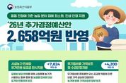 (누리일보) 농림축산식품부는 2026년 추가경정예산안으로 총 2,658억원을 편성했다고 밝혔다. 이번 추가경정예산안에는 중동 전쟁으로 인한 요소 공급 차질, 농업용 면세유 가격 인상 등에 따른 농가 경영 부담을 경감하고, 소비자 장바구니 물가 부담 완화 등을 위해 ▲농가 유류비 부담 경감, ▲농업인, 소비자 등 민생 안정, ▲K-푸드 수출지원, ▲농지관리 기반 강화 등 분야에 총 8개 사업 2,658억원을 반영하였다. 중동 전쟁 영향으로 고유가가 지속되면서 경영비 중 난방비 비중이 높은 시설원예농가의 난방용 유류를 대상으로 유가연동보조금을 한시적으로 지원하기 위한 예산 78억원을 반영하였다. 동 사업을 통해 면세유 가격상승분을 유가와 연동하여 지원함으로써, 농가의 경영비 부담을 완화하고, 안정적으로 농산물이 생산·공급될 수 있도록 지원할 계획이다. 그간 중동 호르무즈 해협을 통해 무기질비료 주원료인 요소의 전체 수입량의 38.4%가 들어왔던 상황으로 무기질비료 가격이 상승할 것으로 예상된다. 이에, 선제적으로 농가에 무기질비료 구입가격 일부를 지원하기 위한 예산 42억원을 정부안에 반영하였다. 아울러, 비료
