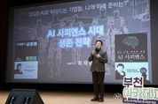 (누리일보) 부천시는 지난 19일 부천시청 어울마당에서 부천시 전 직원을 대상으로 조용익 시장의 인사말과 함께 ‘부천 아카데미 플러스(+)’ 세 번째 강연을 열었다. ‘부천 아카데미 플러스(+)’는 부천시가 2025년부터 분기별로 운영 중인 명사 초청 강연 프로그램으로, 공직자가 시정 전반에 대한 통찰과 전문성을 넓히고 미래 변화에 능동적으로 대응할 수 있도록 각 분야 최고 연사를 초청해 진행하고 있다. 이번 강연에는 성균관대학교 공과대학 최재붕 교수를 초청해 ‘AI 사피엔스 시대 생존 전략’을 주제로 진행했으며, 부제는 ‘2025. AI로 뛰어드는 기업들, 나의 미래 준비는?’이다. 최 교수는 ‘AI 사피엔스’, ‘AI 대전환’이라는 키워드를 통해 급변하는 사회 속 인공지능(AI) 시대를 살아가는 시민과 공직자의 생존 전략을 제시했다. 이와 함께 디지털 세계관을 바탕으로 한 상상력과 실력의 결합, AI와 인문학, 경험 디자인이 융합된 팬덤 중심 사회의 변화를 강조하며, 공직자도 자발적인 AI 학습과 전문 역량 강화를 통해 새로운 시대의 리더로 성장해야 한다고 강조했다. 최재붕 교수는