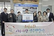 (누리일보) 수원시 장안구 조원1동은 지난 17일 조원감리교회로부터 조원1동 어려운 이웃을 위한 상품권 500만 원을 기부받았다고 전했다. 이번 기부는 바자회를 통해 얻은 수익금으로 마련되어 지역사회의 소외된 이웃들에게 조금이나마 보탬이 되고자 하는 마음으로 준비된 것으로 조원1동 행정복지센터를 통해 어려운 이웃들에게 전달될 예정이며, 교회와 지역사회가 하나 되어 사랑을 실천하는 계기가 될 것으로 기대된다. 서원석 조원감리교회 담임목사는 “조원1동의 이웃들에게 따뜻한 마음을 전할 수 있어 기쁘다”며 “앞으로도 지역사회를 위한 다양한 나눔 활동을 이어가겠다”고 전했다. 김옥영 조원1동장은 “조원감리교회의 나눔에 진심으로 감사드린다”며 “기부 물품은 필요한 이웃들에게 잘 전달하겠다”고 말했다. 한편, 조원감리교회는 매년 조원1동 어려운 이웃을 위해 바자회 수익금 및 교인들의 헌금으로 마련한 물품을 지속적으로 기부하고 있다.