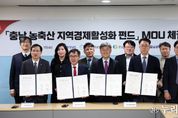 (누리일보) 충남도는 19일 도청에서 농업정책보험금융원, 충남테크노파크, 충남경제진흥원과 ‘충남 농축산 지역경제 활성화 펀드’ 업무협약(MOU)을 체결했다. 이번 협약은 도내 농축산식품 기업 발굴·투자를 통해 농축산 분야 벤처 창업의 혁신 성장 체계를 구축하고자 마련했다. 전형식 정무부지사와 서해동 농업정책보험금융원장, 서규석 충남테크노파크 원장, 한권희 충남경제진흥원장, 운용사인 류준걸 와프인베트먼트 대표이사, 임성원 노틸러스인베스트먼트 대표이사 등 관계자 20여 명이 참석한 가운데, 이번 행사는 경과 보고, 협약 설명 및 서명 등의 순으로 진행했다. 이번 협약으로 각 기관은 도내 농축산식품 분야 창업 생태계 활성화와 스타트업 성장 지원을 강화하기 위한 ‘충남 농축산 지역경제 활성화 펀드’ 제1호를 결성·운영하는 데 협력한다. 구체적인 협력 내용은 △농림수산식품기업 발굴·육성을 위한 정보 공유 △투자 및 자금 연계 관련 업무 △멘토링 및 교육 등 벤처 창업, 투자 활성화를 위한 행사 공동 개최 △지역경제 활성화 필요 업무 등이다. 충남 농축산 지역경제 활성화 펀드는 총 100억 원 규