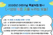 (누리일보) 광주시교육청유아교육진흥원은 ‘제104회 어린이날’을 맞아 오는 4월 30일 본원 실내·외 체험영역 및 시청각실 등에서 어린이날 특별 가족체험 ‘세·모·꿈(세상의 모든 꿈을 누리는 오늘)’ 행사를 개최한다. 이번 행사는 어린이날을 기념해 유아들에게 다채로운 놀이 경험을 제공하고, 가족이 함께 참여하는 건강한 놀이 문화를 확산하기 위해 마련됐다. 행사는 4월 30일 오후 2시부터 5시30분까지 만 3~5세 유아와 가족 등 총 100가정(총 250명 내외)을 대상으로 진행된다. 특히 유아의 발달 단계에 맞춰 ▲우주마을·아이(AI)놀이터 등 10개 실내·외 체험 활동 ▲창의 체험(페이스페인팅, 풍선아트, 고무줄 나비 날리기) ▲특별 공연(버블·매직·레이저 쇼) 등이 운영된다. 폴라로이드 사진 촬영과 돌림판 돌리기 등 가족 단위 부대행사도 열린다. 또 지역 대학과 연계를 통해 ‘예비 유아교사’인 전남대학교 유아교육과 학생 30여 명이 자원봉사자로 활동하며 안전한 놀이를 지원한다. 행사 참여 신청은 오는 31일 오전 9시부터 광주유아교육진흥원 누리집에서 선착순 100가정