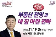 (누리일보) 성남시는 오는 11월 19일 오후 3시 50분~5시 30분 시청 1층 온누리에서 ‘부동산 전망과 내 집 마련 전략’을 주제로 한 희망성남 토크콘서트 8강을 연다. 이번 초빙 강사는 고종완 한국자산관리연구원장이다. 고종완 원장은 변화하는 부동산시장 속에서 시민들이 알아야 할 부동산 정책, 향후 시장 전망, 내 집 마련 전략 등에 관해 강연한다. 고 원장은 한양대학교 도시공학박사로 건국대학교 부동산대학원 초빙교수, 한양대학교 부동산융합대학원 특임교수, LH자문위원 등을 역임했다. 현재 국민연금공단 대체투자위원회 위원, 금융위원회 금융발전심의회 위원 등으로 활동하고 있다. 저서로 ‘살 집 팔 집’, ‘대한민국 부동산 전쟁’ 등이 있다. 강연은 무료로 진행되며, 성남시 평생학습 통합 플랫폼 ‘배움숲’ 홈페이지를 통해 선착순 600명까지 신청할 수 있다. 성남시는 경제 특강 2탄으로 오는 12월 9일 김광석 한국경제산업연구원 경제연구실장을 초빙해 희망성남 토크콘서트 올해 마지막 강연(9강)을 연다.