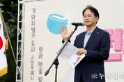 (누리일보) 신상진 성남시장이 20일 저녁 중앙공원 야외공연장에서 열린 ‘2025 성남페스티벌’ 개막공연에 참석해 축제의 성대한 개막을 선언했다. 이날 개막공연은 첨단기술과 예술이 융복합된 혁신적인 메인 콘텐츠 ‘숲 극장:동화(動花)’를 중심으로 진행됐으며, 시민들이 합창단으로 참여해 축제의 진정한 의미를 더했다. 신 시장은 약 50분간의 메인 콘텐츠를 관람한 후 무대에 올라 개막 인사를 전했다. 신 시장은 “성남의 혁신적 도전을 보여주는 의미 있는 공연”이라며 “첨단기술과 예술, 그리고 자연과 시민의 열정이 하나로 어우러진 이 축제를 통해 상생과 통합의 가치를 실현하며 글로벌 문화도시 성남의 새로운 도약을 시작하겠다”고 말했다. 또한 신 시장은 “오늘 멋진 공연을 만들어주신 축제 총감독 KAIST 이진준 교수님과 70여 명의 오케스트라, 1000여 명의 시민합창단, 그리고 이 순간을 위해 헌신해 주신 모든 관계자 여러분께 깊은 감사를 드린다”고 말했다. 마지막으로 신 시장은 “지금부터 28일까지 ‘시민의, 시민에 의한, 시민을 위한 축제’ 2025 성남페스티벌을 본격 시작한다”며 공식