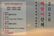 (누리일보) 의정부시는 2026년 1월 1일 병오년 새해를 맞아 지역 주민들이 함께 걸으며 희망찬 2026년을 시작할 수 있도록 ‘해맞이 산책, 하천길 따라 새빛정원까지’ 행사를 개최한다. 이번 행사는 ▲호원 생활체조광장에서 출발해 ▲신의교~신곡교 중간지점 벽천분수 ▲동오역 생활체조광장 ▲경기도청 북부청사역 인근 벽천분수를 거쳐 ▲신곡새빛정원까지 이어지는 릴레이 산책 코스로 진행된다. 참가자들은 새해 첫날 아침 각 지점을 차례로 걸어 최종 도착지인 신곡새빛정원에서 함께 해돋이를 감상할 예정이다. 새해를 축하하는 역동적인 북 공연과 신년 운세 뽑기 등의 시간을 가지며 의미있는 2026년을 시작할 예정이다. 특히 2026년을 여는 첫 행사인 만큼, 시민이 주인공이 되는 축제를 만들기 위해 새해를 맞아 소중한 사람이나 자신에게 보내는 편지를 사전 접수해 신곡새빛정원에서 함께 공유할 예정이다. 김동근 시장은 “새해 첫날 이웃과 함께 걸으며 소통하고, 희망찬 2026년을 시작하는 뜻깊은 자리가 될 것”이라며 “행사를 준비 중인 통장협의회에 감사드리며, 의정부 시민들의 많은 관심과 참여를 부탁드린다”고 말했다