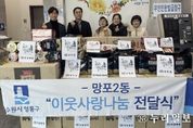 (누리일보) 영통구 망포2동 행정복지센터는 지난 6일 망포2동 바르게살기위원회가 관내 저소득 가정을 지원하기 위해 김 20박스를 기탁했다고 밝혔다. 이번 후원은 설 명절을 앞두고 지역사회 내 취약계층의 생활 안정을 돕고 나눔 문화를 확산하기 위해 마련됐다. 안정미 망포2동 바르게살기위원회장은 “비록 작은 정성이지만 어려운 이웃들에게 따뜻한 위로와 힘이 되길 바란다”며 “앞으로도 지역사회와 함께하는 나눔 활동을 꾸준히 이어가겠다”고 밝혔다. 이용태 망포2동장은 “망포2동을 위해 항상 애써주시는 바르게살기위원회에 깊이 감사드린다”며 “기탁된 후원물품은 도움이 필요한 가정에 소중히 전달하겠다”고 전했다.